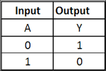 NOT gate (inverter) has one input and one output, it output logical one (High/ 5V) while the input is zero (Low/0V) and vise versa.