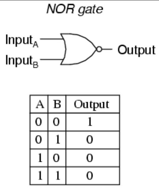 NOR gate is nothing but an OR gate with NOT gate connected to the output, that’s mean that the output is one (High) only when all the inputs are zero (Low).